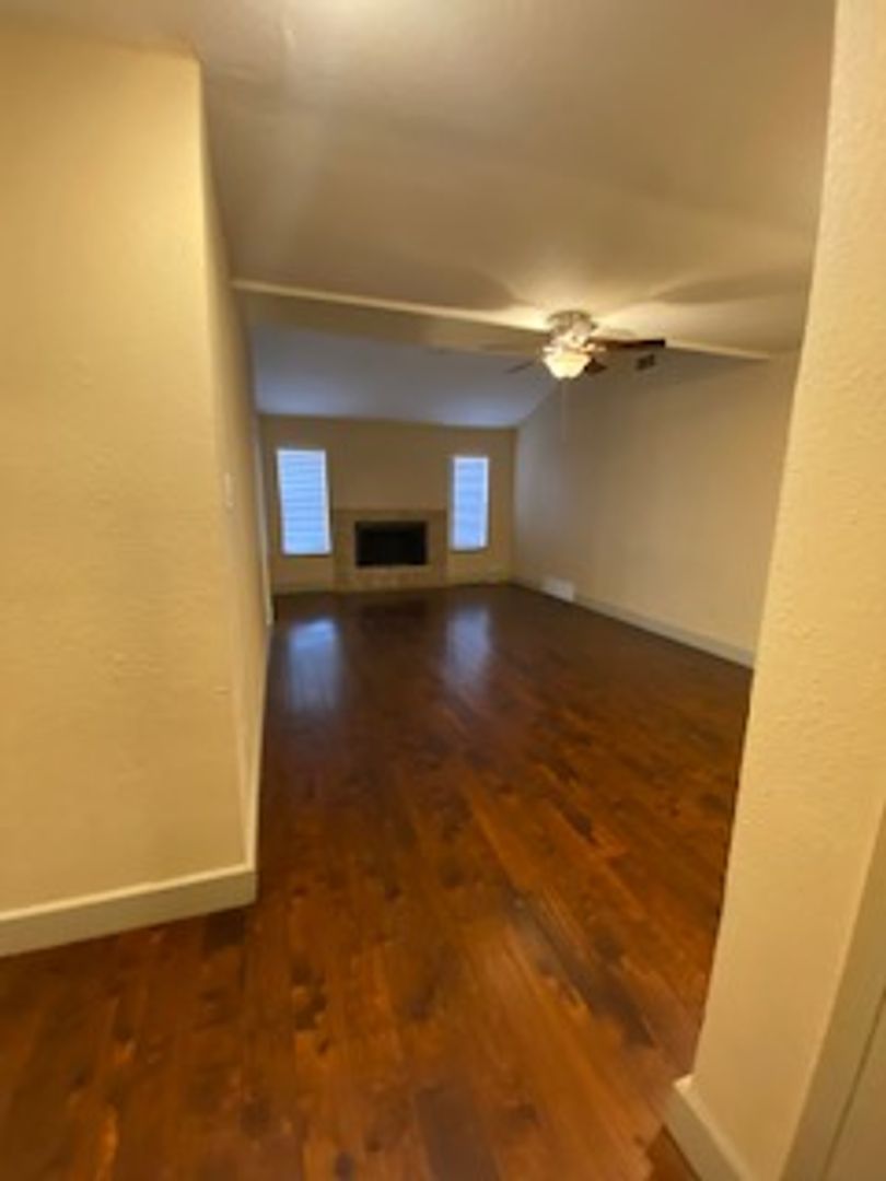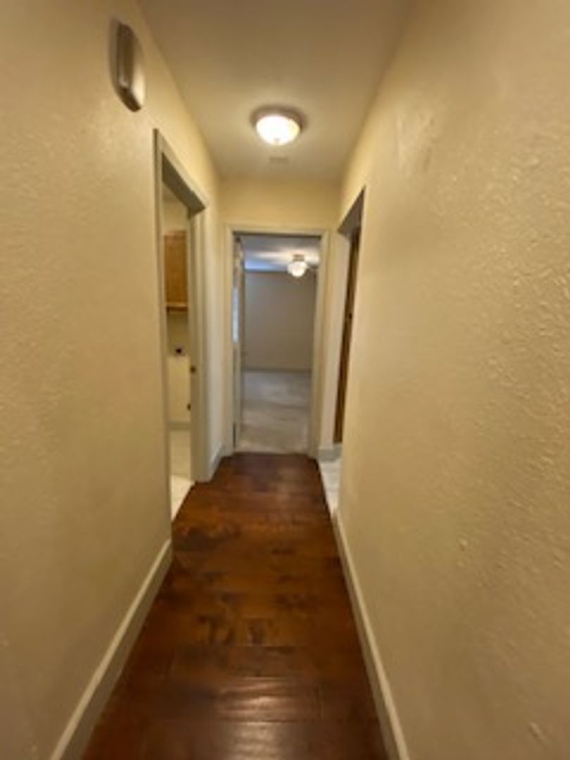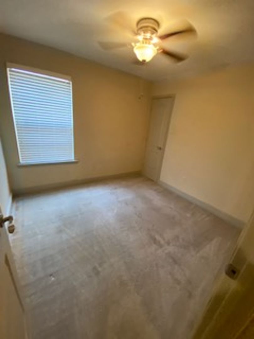 This 4 bedroom, 2 bath house is split with large master & bath on one side the other 3 bedrooms & bath on the other side. Back yard backs up to creek which adds to privacy.