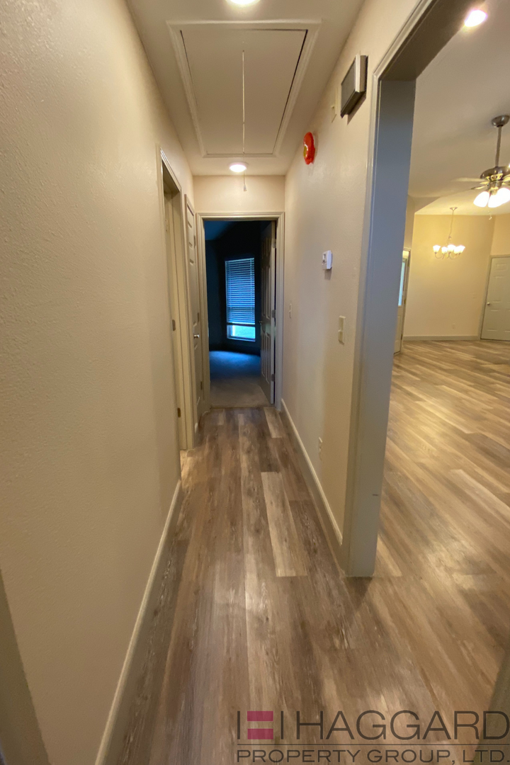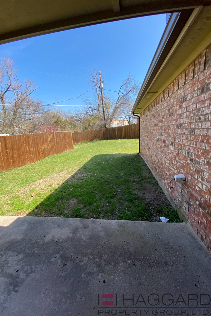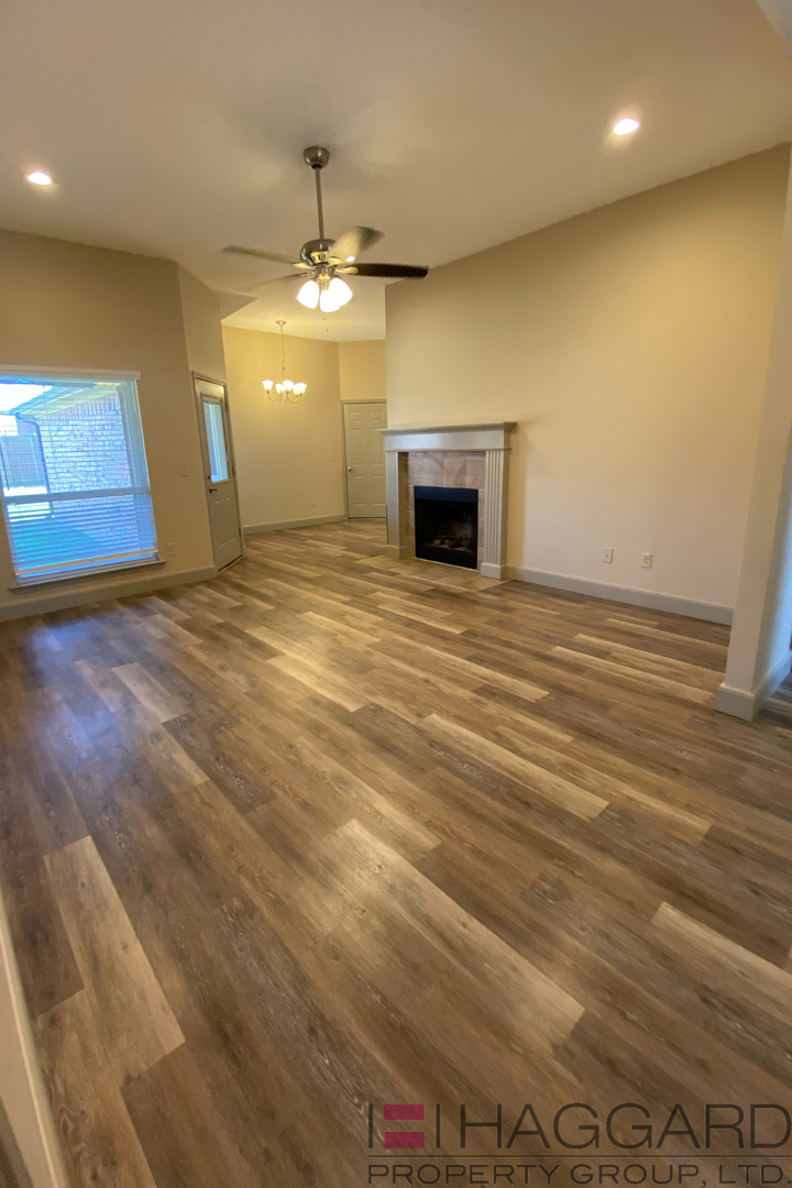 This recently renovated home has three bedroom, two bath, and a two car garage. It is 1243 sq. ft. and sits on a 7292 corner lot. Nice wooden floors, open style living areas, bedrooms with carpet, and granite counters throughout the house. New appliances including the dishwasher, stove, and microwave in a large open kitchen with tons of cabinets and storage. The living room has a fireplace with tile surround and a mantel. It has a two tone paint finish and a fenced in yard. Maximum 2 pets per property; only small dog with weight limit up to 30 lbs., no aggressive breeds.